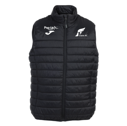 Black puffa gilet with Clane AC logo and club sponsors logo.
